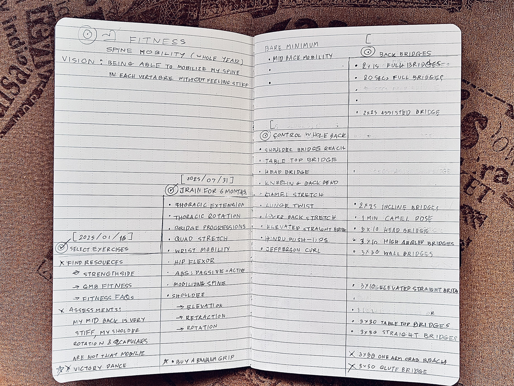 I envision what I want for this Fitness Sprint (a whole year, in this case, because mobility is something you cannot rush, unless you want to break some bones in the process, lol). Then I consider the actions needed to achieve my vision, then establish a milestone launchpad to guide progress.