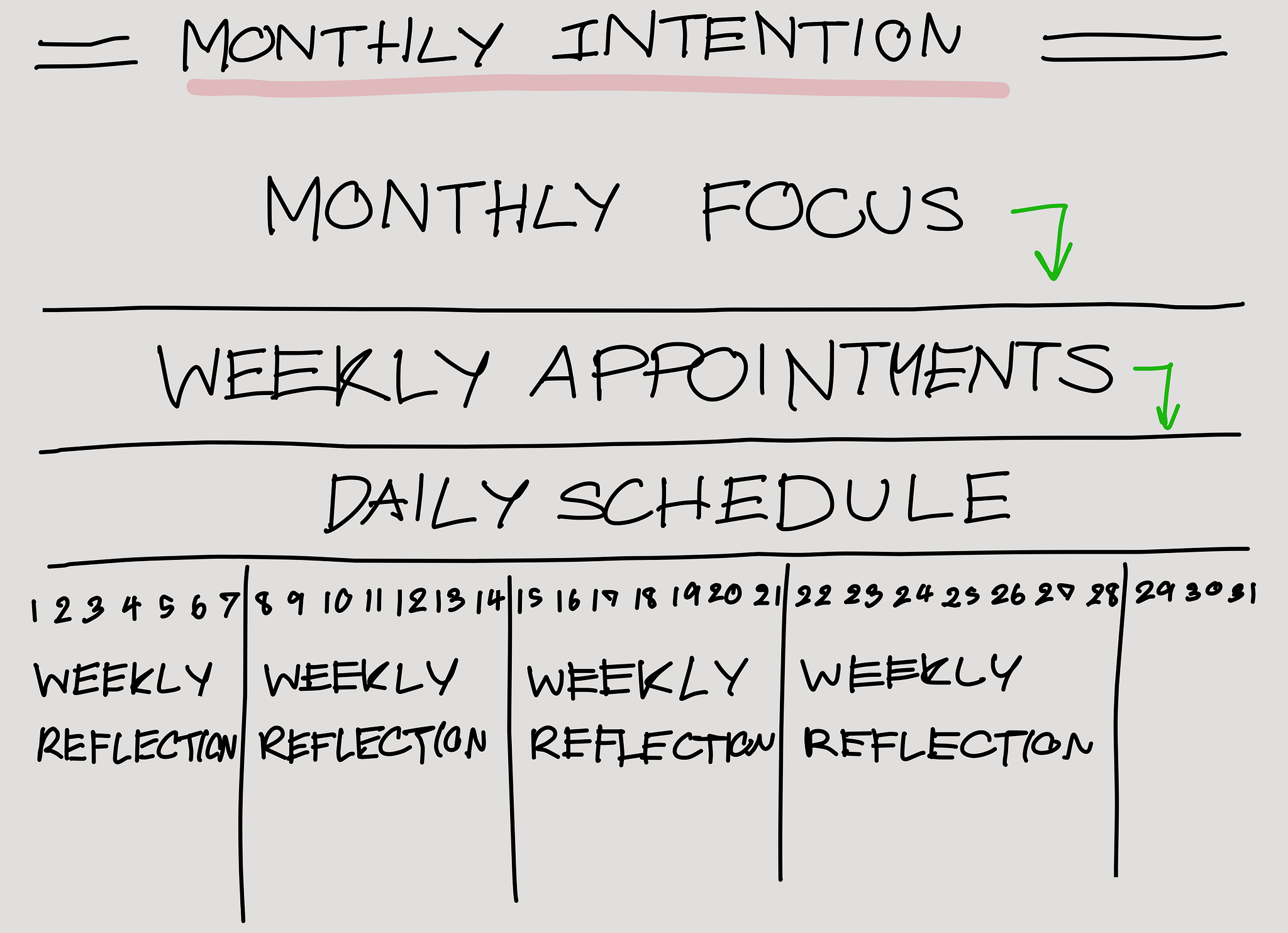 cascading from your monthly key activities and weekly fixed events into your daily schedule.