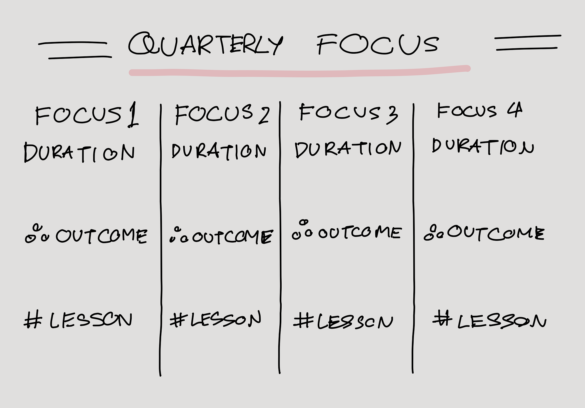 - Quarterly Focus: Reflect on outcomes and lessons learned in each focus area.