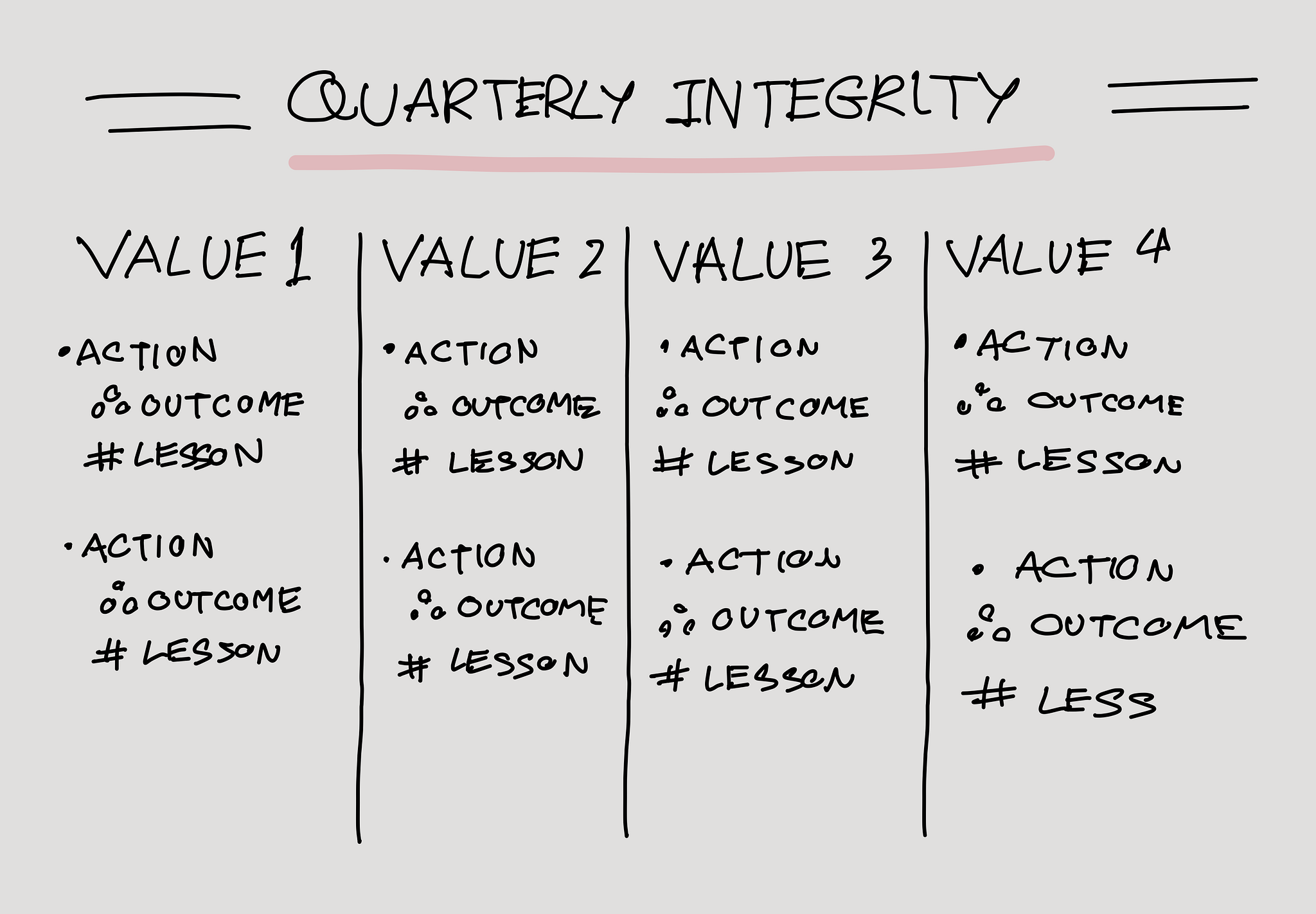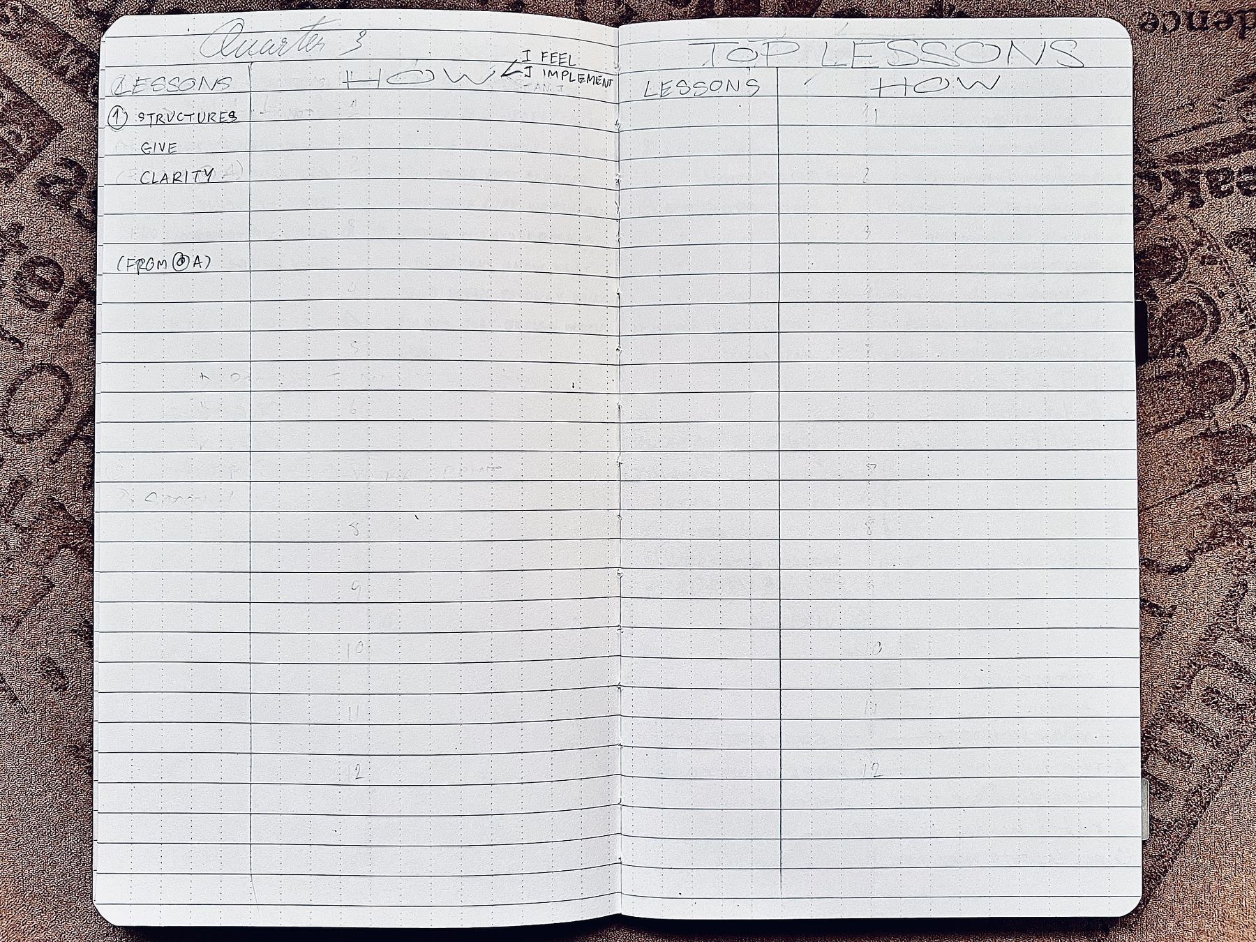 - Quarterly Lessons: Highlight insights that significantly impacted your growth.